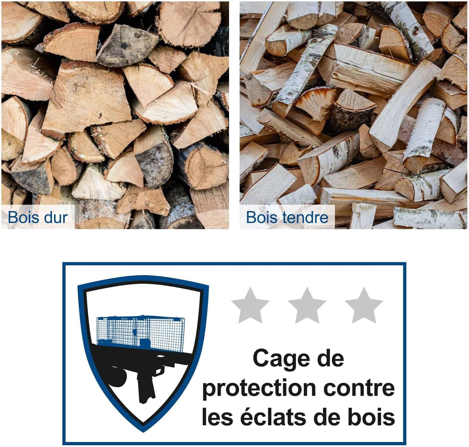 • 🪓 Facilité d'Utilisation : Le couteau robuste réduit l'effort manuel, rendant la tâche accessible même aux débutants en fendage de bois.