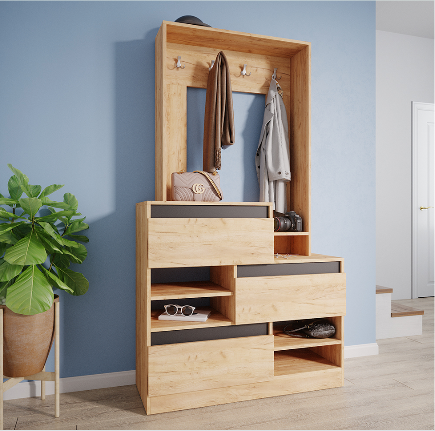 Transformez votre entrée en un espace organisé et élégant avec le "Meuble d'Entrée 100 x 180 Chêne Doré". Ce meuble de rangement polyvalent allie fonctionnalité et design raffiné, idéal pour chaque foyer.