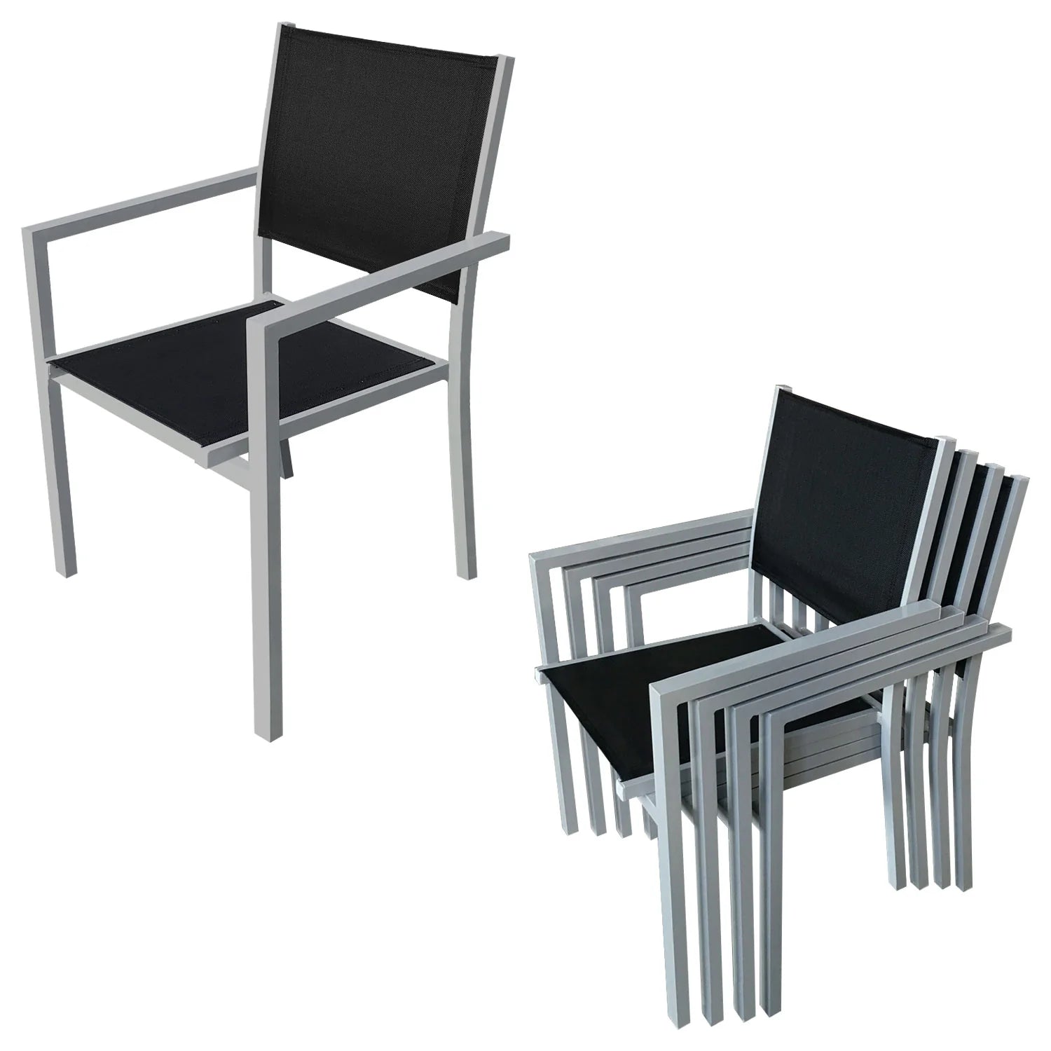• 🎨 Design moderne et élégant alliant aluminium gris et textilène noir, pour une ambiance contemporaine et accueillante